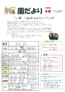 2025,3,15,042025,3,15,032025,3,15,021015,3,15,01 一覧を見る 保育みんなでサーキット あぁ楽しかった2024年3月28日運動会・発表会第44回運動会 開催しました 練習風景です2023年10月14日一泊保育令和5年度 一泊保育2023年7月10日遠足八瀬遠足 ふじ組ばら組編2022年12月13日保育みんなでリズム2022年12月2日遠足八瀬のお山へ・・さくら組2022年11月25日 一覧を見る 令和7年度年間行事 4月給食便りNew!!2026年4月1日4月園便りNew!!2026年4月1日